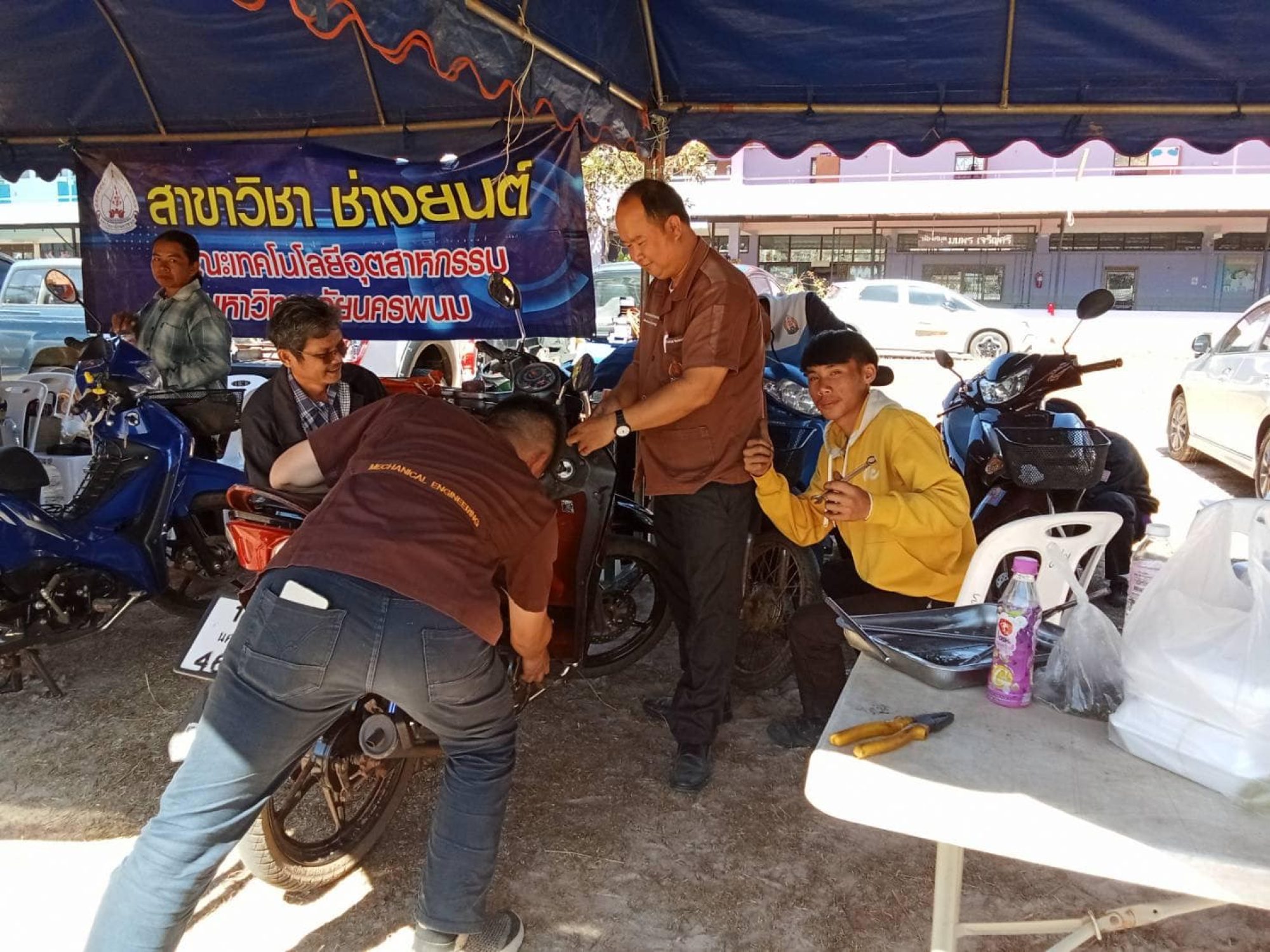 วันที่ 15 มกราคม 2568 อาจารย์ชัยกร บางศิริ คณบดีคณะเทคโนโลยีอุตสาหกรรม มอบหมายให้ ผู้ช่วยศาสตราจารย์สิริวัฒน์ นิลวัฒน์ หัวหน้าสาขาวิชาไฟฟ้า และอาจารย์ทรงพล วิจารณ์จักร หัวหน้าสาขาวิชาช่างยนต์ พร้อมคณาจารย์ และนักศึกษาประจำสาขาวิชาฯ ออกบริการวิชาการให้ความรู้ด้านทักษะอาชีพแก่พี่น้องประชาชน รวมทั้งใหบริการซ่อมแซมบำรุงรักษาอุปกรณ์เครื่องใช้ไฟฟ้าและอิเล็กทรอนิกส์ ,รถจักรยานยนต์และเครื่องยนต์เล็ก ณ โรงเรียนบ้านหนองค้าโคกกุง ต.โพธิ์ตาก อ.เมือง จ.นครพนม