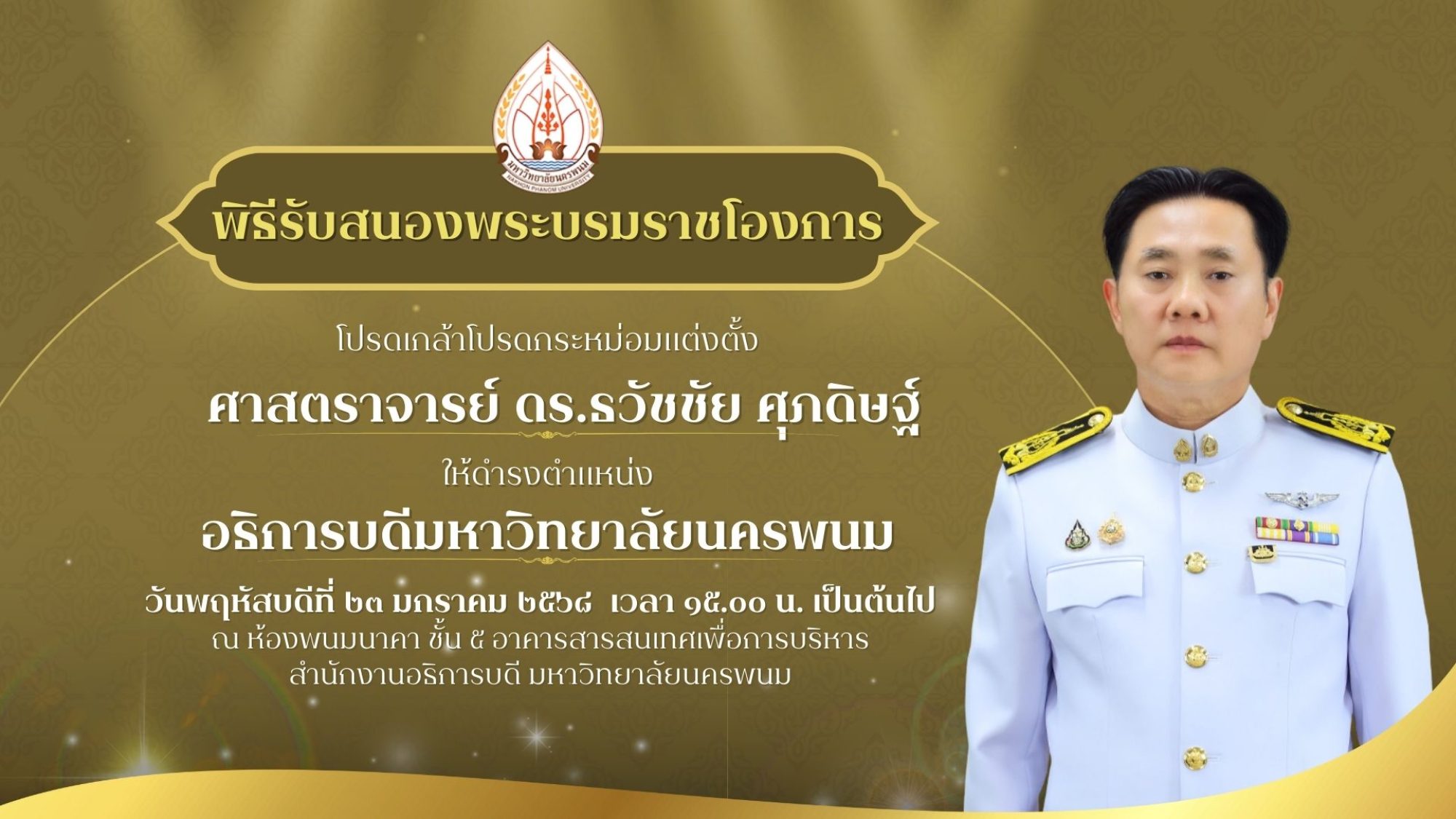 ขอเชิญบุคลากรมหาวิทยาลัยนครพนม เข้าร่วมพิธีรับสนองพระบรมราชโองการฯby peerawish parephanin Newson Posted on 20/01/202520/01/2025 ขอเชิญบุคลากรมหาวิทยาลัยนครพนม เข้าร่วมพิธีรับสนองพระบรมราชโองการโปรดเกล้าโปรดกระหม่อมแต่งตั้งอธิการบดีมหาวิทยาลัยนครพนม.วันพฤหัสบดีที่ 23 มกราคม 2568 เวลา 15.00 น.ณ ห้องพนมนาคา ชั้น 5 อาคารสารสนเทศเพื่อการบริหาร สำนักงานอธิการบดี มหาวิทยาลัยนครพนม.การแต่งกายชุดปกติขาวหรือชุดสูท FacebookFacebookXXLINELine