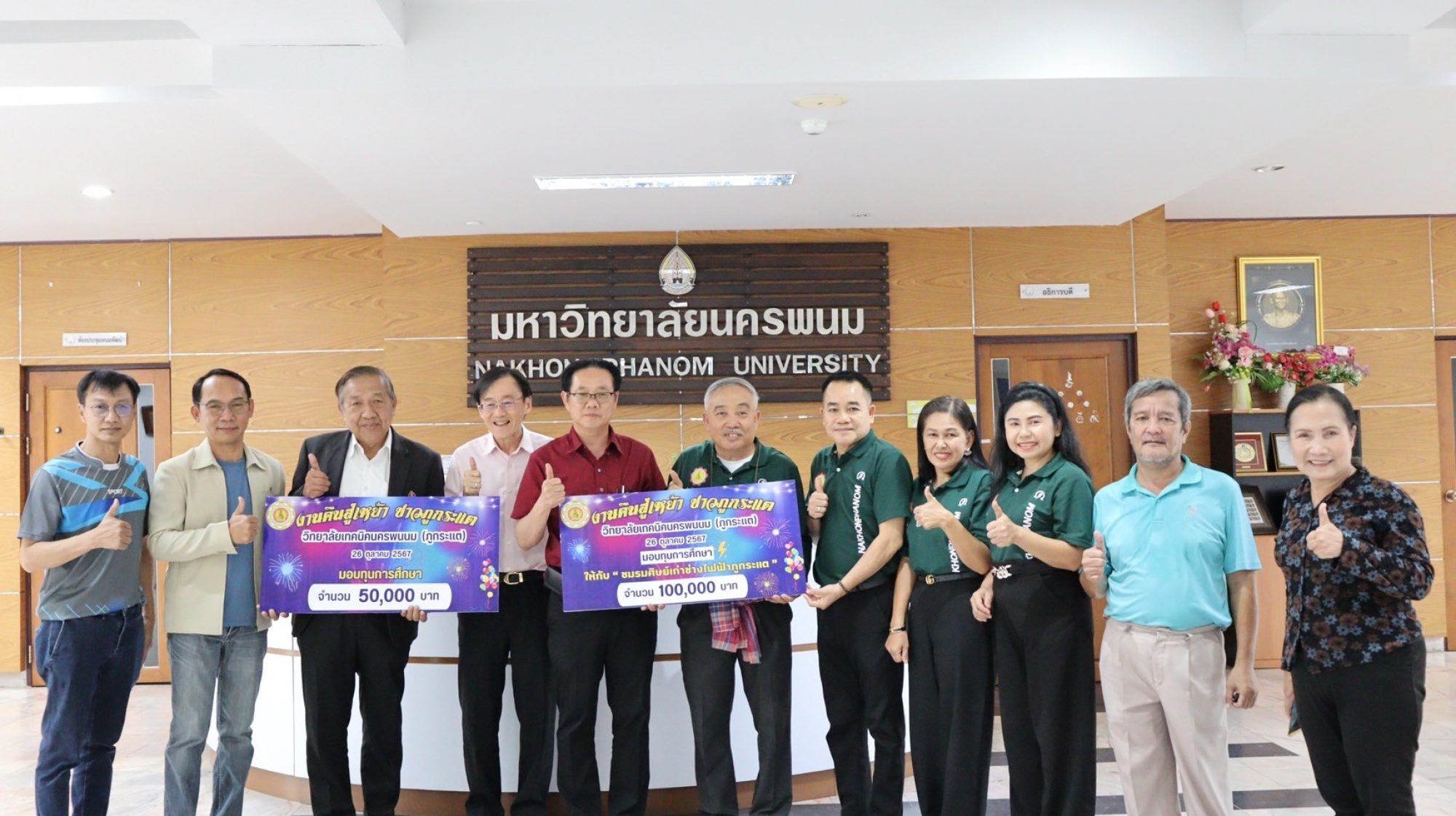 ชมรมศิษย์เก่าวิทยาลัยเทคนิคนครพนมเดิม (ภูกระแต) มอบทุนการศึกษาและสนับสนุนเงิน แก่คณะเทคโนโลยีอุตสาหกรรม จำนวน 150,000 บาท